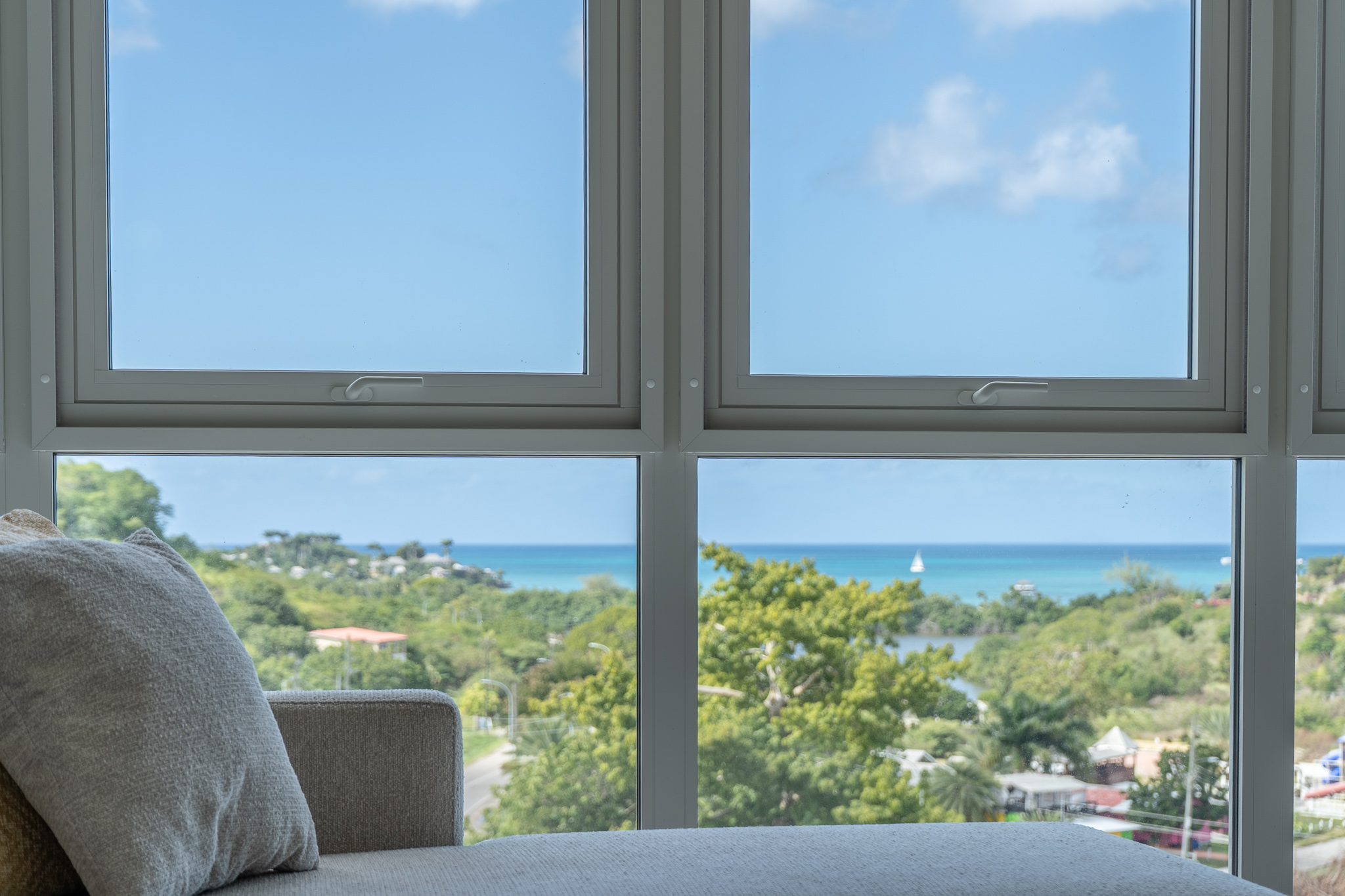 Ocean Breeze 4A is a newly built two-bedroom, two-bathroom condo located within the gated Sugar Ridge community on Antigua's west coast. Set just minutes from Jolly Harbour, this condo offers ocean and hillside views in a quiet, private setting.